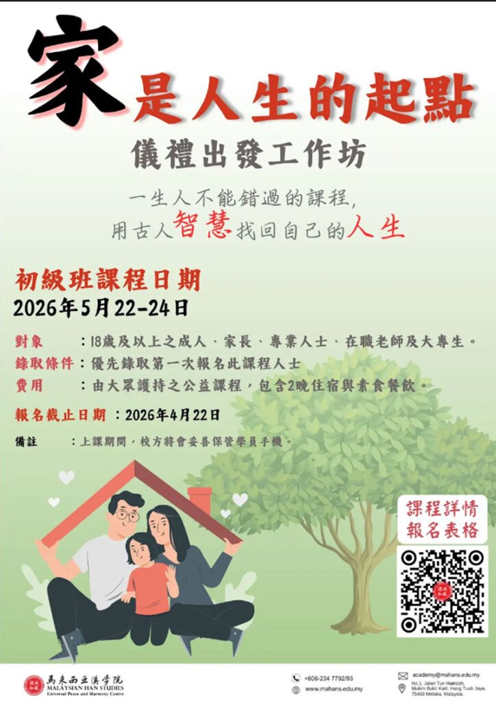 當家庭成為幸福旅程的起點時,無論您從事哪個行業,擁有一個幸福的家庭便是最珍貴的財富。這三天的短期課程將以《弟子規》、《常禮舉要》和《了凡四訓》為基礎,我們將深入探索中國古代的智慧,以應對現代生活中的各種挑戰。通過精彩的講座、深入的交流和即時的答疑,課程將幫助您重新思考如何建立一個幸福美滿的家庭。我們將深入探索中國古人的智慧,以應對現代生活中的各種挑戰。通過精彩的講座、深入的交流和即時的答疑,課程將幫助您重新思考如何塑造自己的幸福人生。讓我們攜手打造一個幸福家庭,共同為實現世界的和諧而努力。